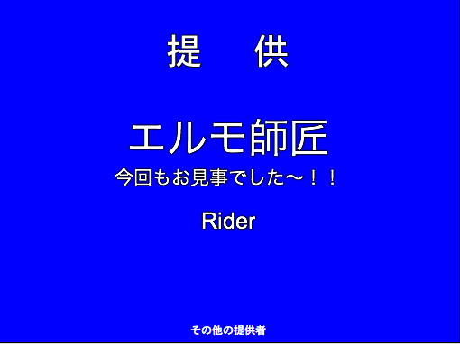 ニコ動に参入して1ヶ月ほどなので、 ご存知の通り… エンコードもよく分かっていないため音ズレしたり、 何かよくわからないボタンを触ってしまってパニクったり、 毎日が発見の連続です。 前回のワンルーム〜の時から、「これ何だろう?」と思っていたのが 最後の部分。 画面が真っ青になて、白文字が入り、 女の人のナレーションで 「この動画は、ご覧のユーザーのみなさんが応援しています」 というのです。 最初は、「あれ?また何かボタン押しちゃったか?」と思ったのですが、 よくよく調べてみると・・・・!!! お金を払ってスポンサーになってくれているのですねっ!!! びっくりしました。 そんなことしていただいて…感無量ですよ!! 毎日、涙目でみなさんのコメントや提供コメントを読んでいます。 本当にありがとうございます・・・(涙) この場を借りて(自分のブログですがw) 『エルモ師匠』さん『Rider』さん、ありがとうございました!! 本当にありがとうございました!!!! |